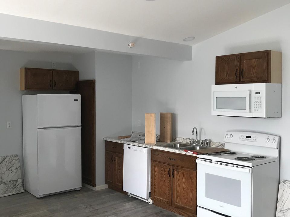 New construction, washer,dryer,dishwasher,microwave, range, refrigerator with ice, Amish oak cabinets, vaulted ceiling's, keypad restricted access, large event center, playground equipment, small quiet community. Grocery store and post office close by. Park and good fishing river close by. Key fee $25 renter pays utilities