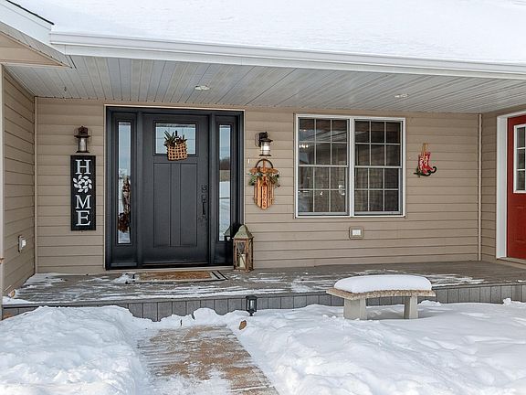 Well-maintained single-family ranch offering 3 bedrooms, 3 full baths, and 3,446 square feet of finished living space set on a beautiful 30-acre parcel. The inviting living room features a gas fireplace and vaulted ceiling, creating a warm and open atmosphere. The remodeled kitchen showcases a large island with white countertops that seats six, plank flooring, and a spacious dining area—ideal for everyday living and entertaining. Tongue-and-groove wood ceilings add warmth and character throughout. The primary suite includes a large bath with a whirlpool tub and a walk-in closet. The finished lower level expands the living space with a large recreation room, additional bedroom, and full bathroom—perfect for guests or extended living needs. Enjoy privacy, space, and a functional layout in this exceptional property.