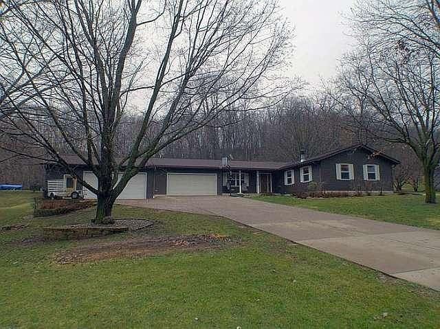 THIS RANCH STYLE HOME SETS ON OVER 2 ACRES YET ONLY MINUTES FROM TOWN AND SCHOOLS. COMFORTABLE KITCHEN AND DINETTE, LARGE LIVROOM WITH EAST FACING BOW WINDOW, 3 BATHS, LOWER LEVEL FAMILYROOM WITH FIREPLACE AND 4TH BEDROOM AND EGRESS WINDOW. 4 CAR GARAGE THAT IS PERFECT FOR THE CAR ENTHUSIASTS OR THE WOOD WORKER.