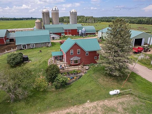 This expansive, 337-acre property is perfectly designed for dairy, beef, and crop farming. It's currently equipped for dairy operations with an 88-cow free stall, constructed in 2019, 44 tie stanchions, and 6 calf pens. Other dairy features include a Harringbone double 6 parlor, two 600-gallon bulk tanks, and a one million gallon pit, all complete with gates, fencing, and additional amenities. Approximately 248 acres are considered tillable lands according to maps. The property also offers 2 large machine sheds with 16-foot sidewalls, one of which was built in 2019. Among the many features of this property, the main farm boasts a 4-bedroom, 1-bathroom home, recently updated with new windows, siding, a metal roof and a beautiful deck and a 3-season room perfect for tranquil evenings. Additionally, the land includes a parcel with an older farmhouse, currently occupied by tenants. With large packages of land such as this rarely available on the market, don't miss out on this opportunity!