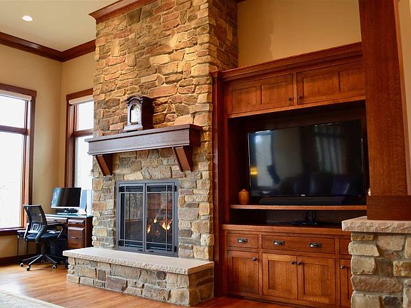 Enjoy the picturesque view of the Red River from this beautiful architecturally designed home boasting over 3,100 sq ft, amenities galore, gorgeous quarter-sawn oak custom cabinetry throughout, great room w/gas fireplace and 12 ft ceilings, master suite w/huge walk-in zero entry shower, walk-in closet and in-floor master bath heating, gourmet kitchen w/granite counter tops and double islands, dining area with beautiful coffered ceiling, three season room, family room w/gas fireplace, walk-out lower level, 3 stall finished heated garage, all on 1.89 wooded acres.