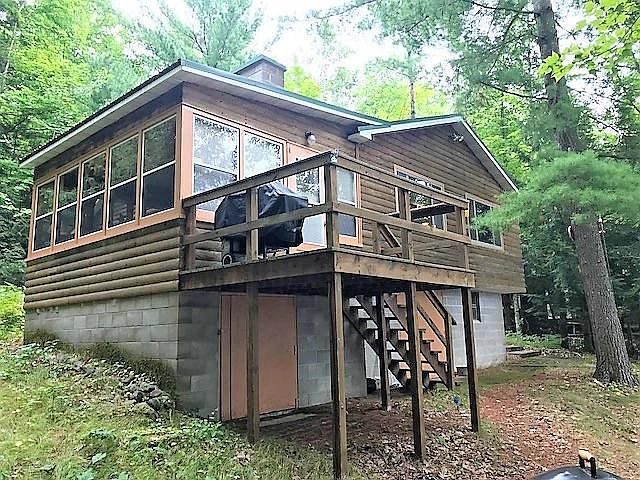 Gorgeous views for this authentic log cabin on Sawyer Lake. Mild slope to sandy waterfront with excellent access to the lake. Charming log beams in living room and kitchen and a stone fireplace. Perfect 4 season room off the side of cabin leads out to a deck to the lake. This dream is real and literally turn key. Rare offering on the south side of lake. Schedule your showing today.