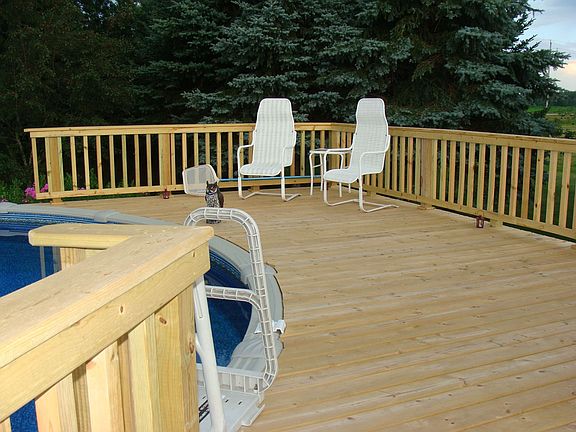 Immaculate 3 bedroom, 1.5 bath ranch home on beautifully landscaped 1.57 acres with mature hardwood trees, apple trees, blue spruce and balsam pines. New features include a recently installed dishwasher and central air! This updated, well-cared for and low maintenance home has newer tile flooring, carpet, countertops, light fixtures, bath and kitchen faucets, siding, brick, new roof and more! Large family room in basement has a woodburning fireplace for those cold winter nights, or step into your hot tub in the four seasons room! Lots of closets and tons of storage. The park-like setting in the backyard includes an inviting concrete fire pit, perennial garden and large vegetable garden. The 24x30 extra back garage is completely insulated with a woodburning stove. There is also a new 14x20 storage shed. The pool and deck were put in 2013. Its in the New London Area school district. This home is move-in ready! Call today!