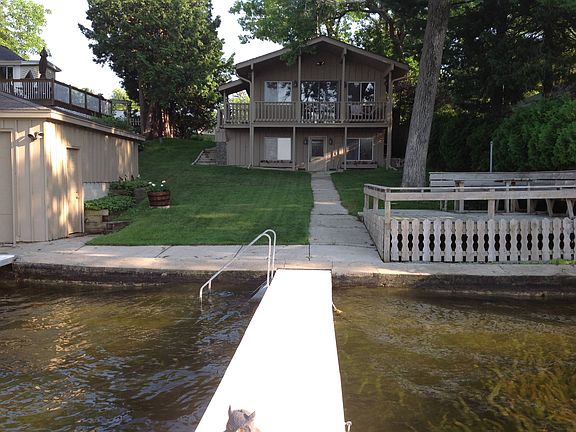 Okauchee lake home with spectacular views. Unique lake-side deck. Boathouse and two piers. 1 1/2 car garage. Parking for 5 cars.. Great swimming with firm frontage on quiet Bay!