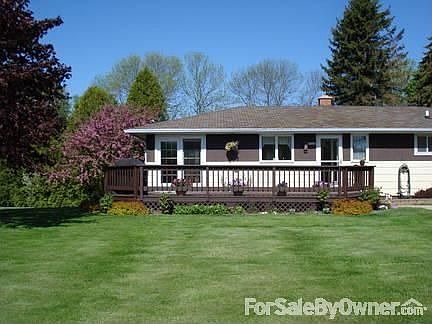 Awesome sunset views over lake! Opportunity knocks for year-round vacation living. Fun spaces indoors & out w/209` of waterfront on over 1.5 manicured acres w/firepit, deck & covered patio to enjoy. Bountiful windows allow panoramic views of East Alaska Lake & Lake Michigan sunsets as well as providing ample sunshine indoors throughout the comfortable updated home. Four car garage. High efficiency gas furnace installed in 2012. Roof new in 2015. Must see! (Must Have!).