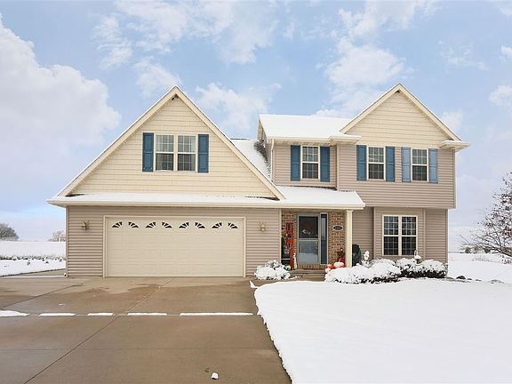 Relax in your own peaceful country park like setting, surrounded by panoramic views! Nestled on 1+/- acre sits this beautiful two-story home has space for everyone! Located between Kaukauna and Wrightstown you'll have the convenience of city amenities in minutes. Step inside to the comfortable living room anchored by a decorative gas fireplace. The large front window brings in loads of natural light and looks out on to scenic views. Tucked behind the living you will find the nicely appointed eat-in kitchen. Stocked with cabinetry the kitchen comes fully applianced and includes a breakfast bar. Sliding doors from the dinette frame the treetops and looks out on to the patio. Adjacent to the kitchen is the combination first floor laundry and half bath. An open staircase from the foyer leads to the upper level that includes a master suite with private full bath, two additional bedrooms with ample closet space as well as a second full bath, and a large bonus room above the garage. Additional feature include: oversized 2.5 garage, full unspoiled basement stubbed for a future bath, 6 panel doors, plenty of closet space, concrete driveway with extra parking area, storage shed, radon system, and much more. This home features spectacular views of the Kaukauna skyline, 4th of July fireworks from Menasha, Appleton, and T-Rats stadium, as well as views of Lambeau Field lights and sometimes the flyover before the game!