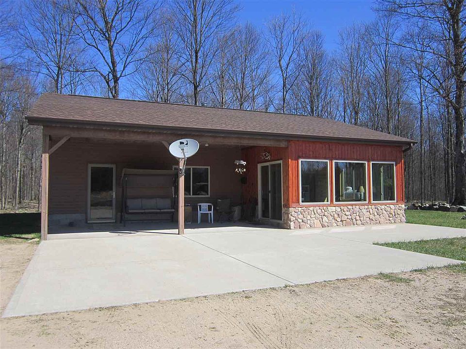 ACREAGE with a year round home or make this your U.P. getaway, its nice for both. 80 ACRES, nicely wooded with ORV/walking trails throughout. This place is nicely tucked into the woods but is open around the home which overlooks a pond. Cozy 1152 sqft 2BR 1 story with a sunroom with lots of windows and a great view. Heat is propane and wood. Drilled well, septic. Adjoins Federal land on 3 sides and you can walk to the Eben Ice Caves from home. The storage is endless in this heated 30x78 pole building with a lean-to. You can purchase with 40 acres for $150,000 if you wish.