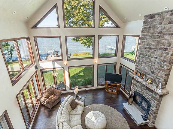 Lake Winnebago retreat! Nearly new custom built 1 owner home setting on the East shore of the Lake. Approx 60 feet of frontage. Includes boat house & dock. This walk-out ranch style home w/views from almost every room. Two story great rm w/wall of windows to take in views! Open concept kitchen w/rich cabinetry, center island w/solid surface counters, built-in stainless appliances. Office workout room & 3 seasons porch complete the lower level. Master & bedroom 2 have their own private balcony. Attached garage w/stairs to lower level. Permeable Cobblestone Drive .Year-round enjoyment!