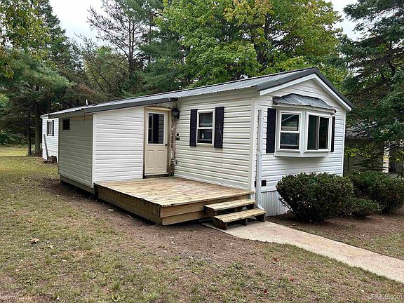 2 bedroom, 1 bath manufactured home just outside of Munising in the Alger Heights Subdivision. The home sits on a .68 acre lot tucked in between trees. Great one level living and you will never be without power with the Generac back-up generator that was installed in 2021. The two car garage has electric and is a great spot to tinker and store your belongings. Speaking of storage, there is an attic in the garage for even more storage! The bathroom floor and walls on each side would need to be replaced due to water damage. Further assessment can be done by a purchaser on what would be needed. Great starter home or if you are looking for one level living.