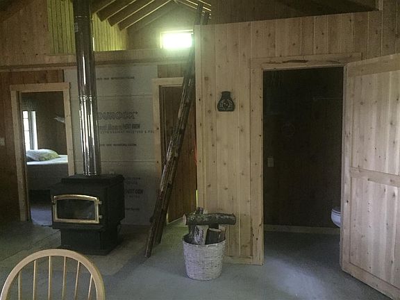 Wake up to Eagles, ducks and geese, fish all day then enjoy the sunsets on the porch. There are two bedrooms, open kitchen living area, a sweet indoor porch facing the lake, an upper loft that can be storage or a place to sleep. This camp sits at a great spot for swimming and fishing.