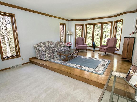Secluded and private home & outbuilding nestled on 6.8 acres. Home w/ 3 bdrms. Master Bedroom w/ vaulted ceilings, WIC & updated attached bath including tile shower & body sprays. Finished walk out lower level w/ bar, theater & game room. Large 36 x 48 outbuilding with car lift to store all your cars & toys. 3 car Attached garage and 4+ car detached outbuilding. Meticulously manicured yard & circle drive. Newer roof, new deck, newer garage doors, new updated Master bath. Security system.