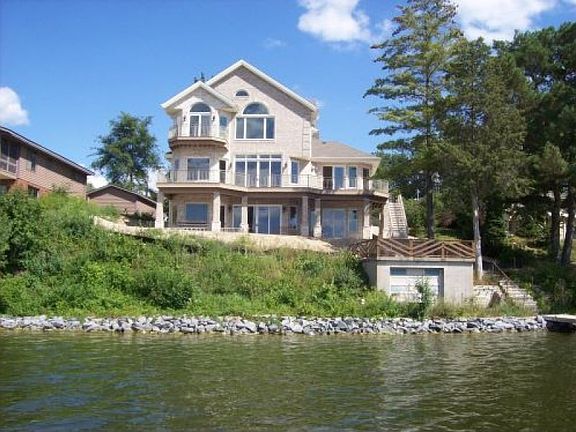 Simply exquisite! Lake country living at its finest. Enjoy 100 ft of breathtaking lake front views in this newly finished, never lived in, one of a kind home. Stunning architecture and superior amenities with Brazilian cherry floors, 4 fireplaces, chef's kitchen, spa inspired bathrooms and luxury master suite with balcony and panoramic lake views. Outstanding lower level with full bar, future sauna, theatre/exercise room and even more space for guests and lakeside entertaining. Private Boat House. Live the dream!