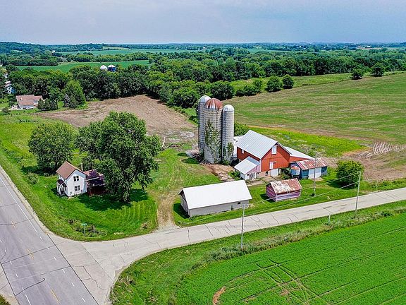 Picture it-5 acres in the country, just outside of town a gentle, rolling hill covered with trees is the backdrop and to the west, some of the most beautifully painted sunsets. Do you see it? Can you picture your family there? What kind of house do you see in that dream? Anything is possible on this parcel once the current home is removed. Do you dream of building a sprawling farmhouse to match the country setting or a modern ranch to simplify life? Bring your dreams and your builder and create the home in those dreams. The barn has a newer metal roof and is in very nice shape. The additional outbuilding provides even more storage options. A separate 7+ acre site is available for purchase too. This property includes the hillside. Check with Jefferson Cty Zoning for specific site questions.