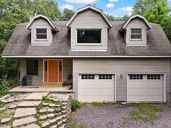 Enjoy wooded solitude in this custom-built home on just over one acre and river access on the included 1.29-acre lot across the street in beautiful Caledonia. Watch wildlife from the windows of the large living room while being warmed by a woodstove next to a large kitchen. Upstairs you will find two very large bedrooms and another large common room. The laundry room is conveniently located on the upper level next to the bedrooms. A full bathroom is located on each finished level. An oversized two car garage on the front of the house and a one car garage on the side of the house provides room for cars and toys! There is also a three-season porch located on the back of the house. AC was replaced in summer of 2025. Room measurements are approximate.