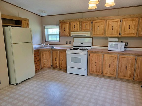 Half-log sided two bedrroom, 1 bath manufactured home on 20 acres, part open and part wooded. Good hunting location with a stand in tree out back. Large 10 x 33 wood deck for spacious outdoor enjoyment. House metal roof installed 2011. 30 x 36 pole building with cement floor built in 2000. Owned water system. 77' drilled well. S lot line surveyed in 2021. Old homestead structure by SE corner. Water heater-2017, water system-2012. 9' high door on pole building.
