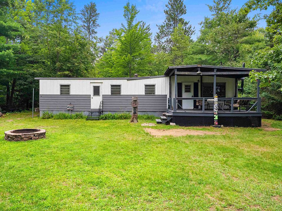 Tucked on two wooded acres, this cozy two-bedroom, one-bath cabin offers the perfect up north retreat. The addition provides extra functional living space, making it easy to gather with family and friends. Outside, enjoy your morning coffee on the deck or spend time exploring the trails throughout the property, ideal for hunting or letting the kids roam. Conveniently located just 12 minutes north of White Potato Lake and 15 minutes south of High Falls, with easy access to main county roads while still set back enough to enjoy that quiet up north getaway feel!