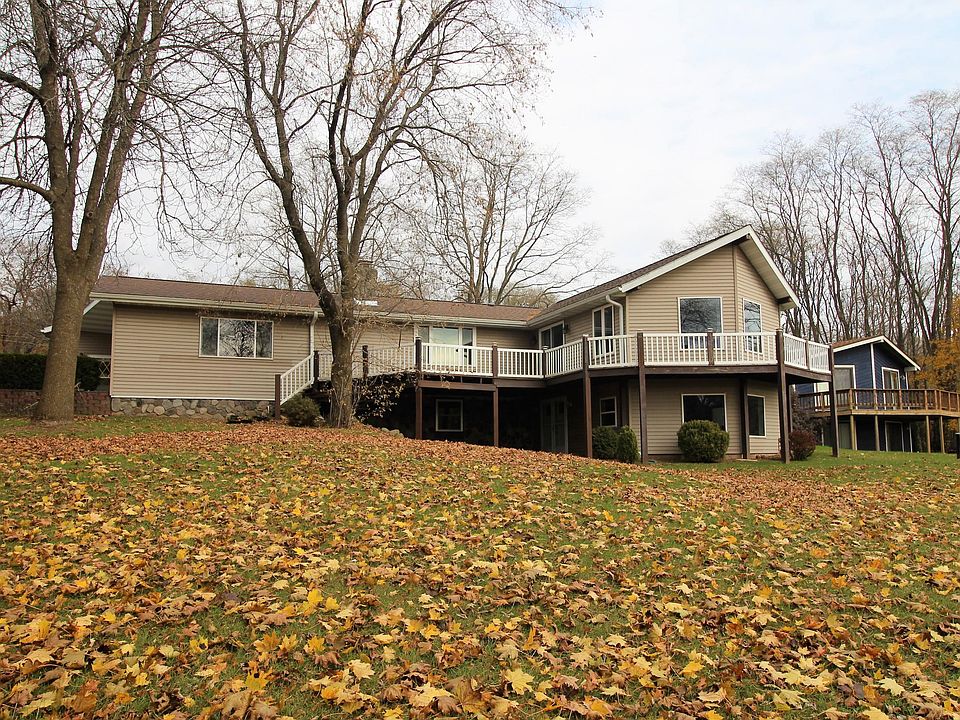 Escape to your own slice of paradise on peaceful Lawrence Lake. Just 2 hrs from Milwaukee and 3.5 hrs from Chicago. This 217 acre''no wake'' spring fed lake is stocked w/bass, perch, northern, bullhead, pan fish and walleye. Perfect lake for fishing, pontooning, kayaking, paddle boarding, etc. The lot is virtually flat with a slight slope down to your private pier and boat house. Home features 3 BD, 2 BA, NFP, and a 4.5 car double deep garage that could be converted to additional living space if needed. Newer addition off the back features 2 separate Great Rooms w/patio doors to the large upper deck or the lower walk out patio. Lower level has space that could easily be converted to a fourth bedroom as well as space for a 2nd kitchen if desired. Plus storage galore. Easy to show!