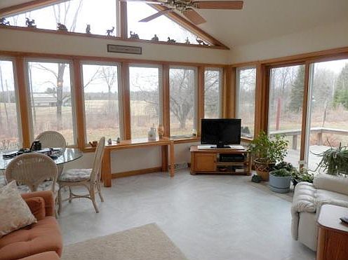 Beautiful one-owner 3-bedroom ranch w/attached 2 1/2-car garage. Gorgeous 4-seasons room w/wooded view, spacious living room w/fireplace, kitchen w/dinette. Handicap accessible full bath and 1/2 bath w/laundry. Newer furnace and some new windows. Relax and enjoy the scenery on the back deck. 24x36 shed w/electric, 10x12 garden shed. Located on a dead-end road near golf course. Approx 2.5 acres.