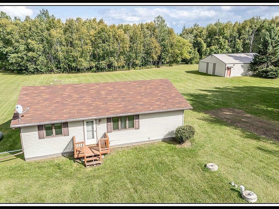 WHAT A PIECE OF PARADISE just minutes south of Hwy 10 - This nearly 10 AC Wooded parcel with BEAUTIFUL 1120 SQ FT 2BD/1BA METICULOUSLY maintained Ranch with OPEN CONCEPT Kitchen w/Cabinets Galore, APPL INCL & Dining Area overlooks HUGE Living Room w/Gas FP, Deck Access & 'Memorabilia Nook' PLUS SPACIOUS bedrooms & large Bathroom! Home has FULL POURED Wall basement with plenty of room for expansion! BRING THE TOYS with 36x45 Storage Building! WILDLIFE GALORE and plenty of room to roam around! OPEN HOUSE Saturday, September 6 from 10 - NOON!
