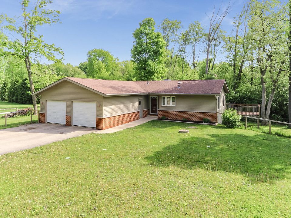Now available in Sugar Creek is this affordable ranch style home with Lake Wandawega Beach access rights! 3 bedrooms and 2 bathrooms all on the main level with a full basement that awaits your finishing touches. The large living room features a natural fireplace and a sliding glass door that leads to a spacious deck. The home sits on a large 0.40 acre lot and offers a private setting surrounded by mature trees. Just a short trip to the beach area makes this a wonderful place for any family to live. Come see this one fast!