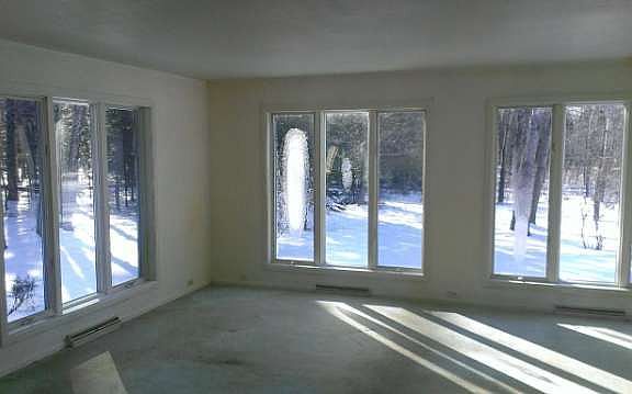 Beautiful views from your open concept ranch, lots of windows over look calm wooded area. Needs some TLC.