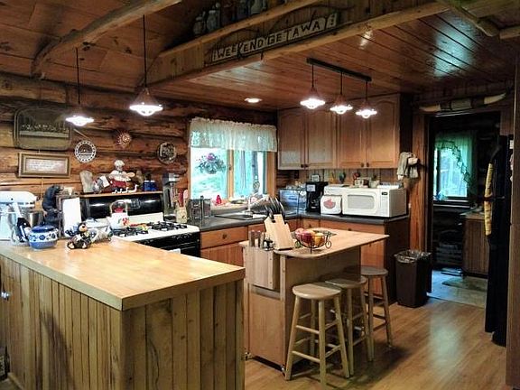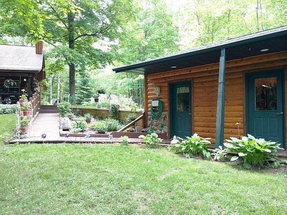 If you're dreaming of that log cabin in the woods, put this on your must see list! This full log home speaks quality on a well wooded, fully landscaped lot with paved driveway and spacious covered porch. Once inside, you will love the quaint antique stove, cathedral ceiling, loft with hand hewn log railing, and open living area. There is a shed with doors on each side for ease in moving your toys and lawn equipment, and an oversized finished, detached 28x40 garage with a 28 x 10 finished, heated laundry room with pantry/closets for plenty of added convenient storage! This location offers easy access to Lake Ten, a deep spring fed lake with great fishing and swimming beach for the kids, and direct access to ATV and snowmobile trails and minutes from 1,000's of acres of public hunting. Whether you are looking for a year round vacation home, investment property or home, this is a great find. Call to schedule your personal tour!