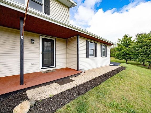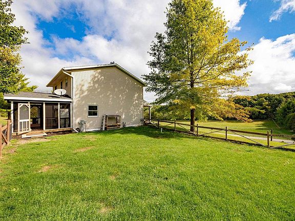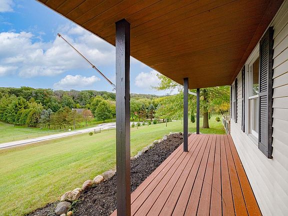 Set on 5 peaceful acres at the end of a quiet cul-de-sac, this 3-bedroom, 3.5-bath home blends rural charm with modern updates, including new A/C and furnace. Perfect for horse lovers, it features an outbuilding with 2 stalls, electricity, and water. Enjoy beautiful views with frequent deer and turkeys. Outdoor living includes a screened porch, deck, patio, and above-ground pool with a surround deck. Inside offers updated lighting, a remodeled upstairs bath, spacious rec room with pool table, and cozy wood-burning stove. The kitchen showcases stainless steel appliances and a new backsplash. A 2-car garage adds storage, while Whitewater Lake and Natureland Park trails are just steps away.W/ updates, space for hobbies & a private country setting, this home is ready to make your own.
