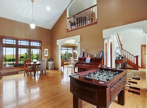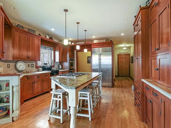 Beautiful home on 5 acres w/a pond. The massive foyer invites you into the great room. The home has an open concept that is great for entertaining. Kitchen offers cherry wood cabinets, subzero refrigerator, and a over-sized granite island. Countless opportunities for this home! The walkout basement has a full kitchen w/ dining area and a bar. Perfect mother-in-law suite or home office/business. Home offers 3 en-suites and a sun room. Extra acreage for sale.