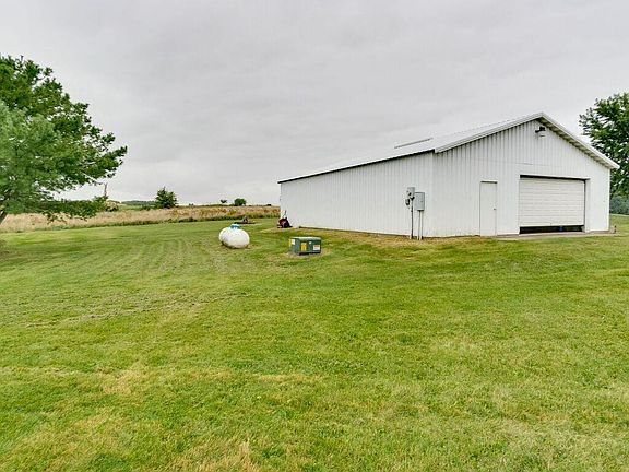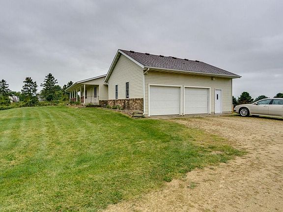 Beautiful 11.87 acres just north of I-94! Easy commute to Hudson, Twin Cities, or Menomonie! House features open design, wood floors, large owner's suite with private bath & whirlpool tub, cathedral ceilings, gas fireplace in living room, formal dining room, informal eating area and full walk out basement. 36x48 pole shed w/power and cement floor. 54x61 shed includes a 16x54 overhang and workshop area. There is also an older barn on the property. Lower level is ready to be finished - all that is needed is flooring! Storm shelter under porch.
