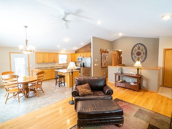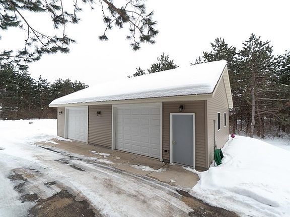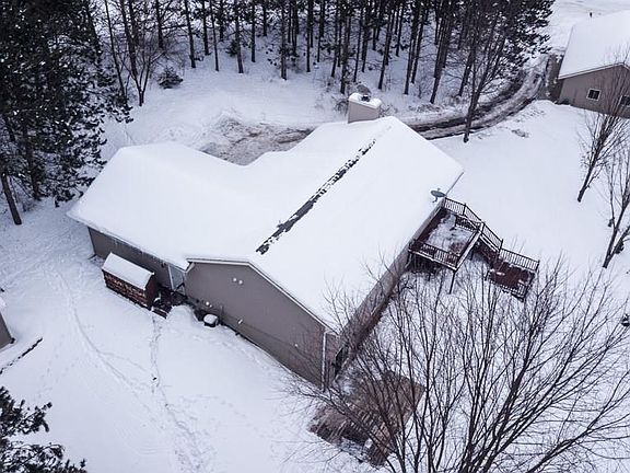 Home nestled on a 4.64 acre wooded lot. Open concept, remodeled kitchen w/quartz counter-tops, stainless steel appliances, hardwood floors, main floor master suite and laundry. Greatroom w/stone fireplace and large windows for a spectacular view. Lower level boosts a family room, 3rd bedroom and bath. Additional semi finished bonus room in Lower level. Tiered deck of dining area leading out to a beautifully landscaped grounds (firepit, waterfall/pond). Deck off the walkout family room. Attached heated garage, additional 41x26 and 22x16 garages on property.