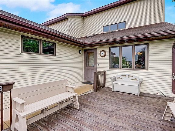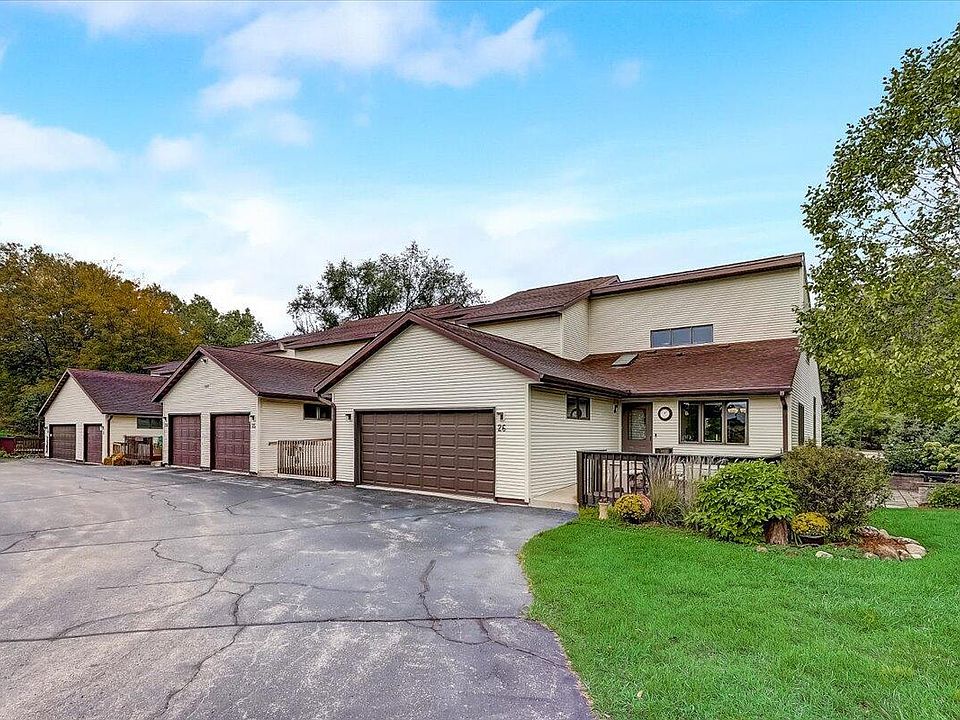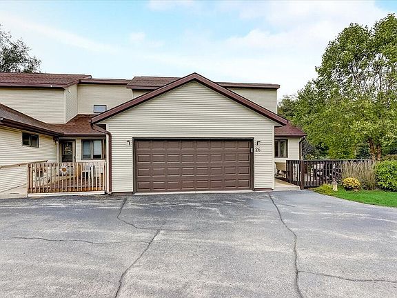 Ready for carefree living? Luxurious end-unit condo is completely move-in ready. Lovely great room has vaulted ceilings, wood floors and a cozy gas fireplace. The lower level features a theatre room, kitchenette, office and beautiful full bath. An egress window has been added to bring in natural light and added safety for your guests. This unit is spacious inside and out. Enjoy outdoor living on the deck and patio and relax in the Rock Lake breeze.
