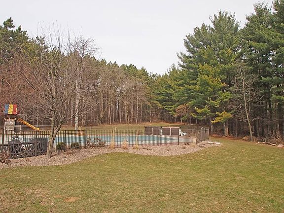 3-story brick colonial on 4.5 acres in Merton's Tamron Ridge! Enjoy this beautiful setting at the end of a cul-de-sac with private wooded backdrop. Interior boasts many recent years updates including kitchen with granite countertops and beamed ceiling. Family room has brick natural fireplace. Main floor office. Nice size bedrooms on the 2nd and 3rd floors. Updated bathrooms. Upper level rec room with wet bar. 3.5 car attached garage. Private back yard paradise features relaxing inground pool!