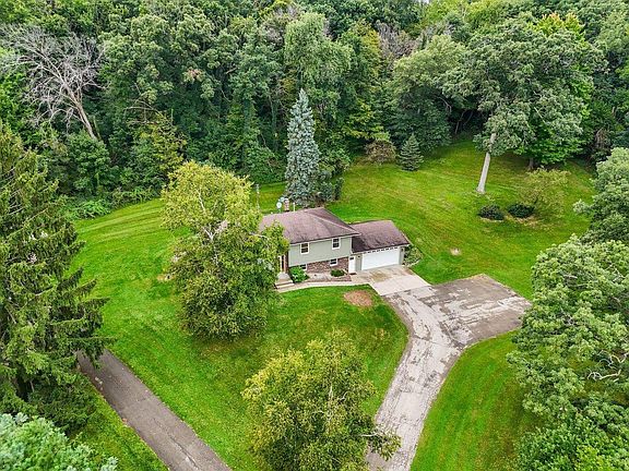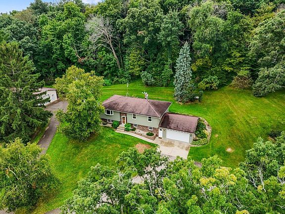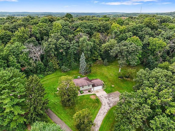 Showings start Friday 9/5. Attractive raised ranch home on 1.3 acres in a peaceful country setting with beautiful views. Updates include new AC (2023), windows, doors & siding (2019), plus a stylish kitchen refresh in 2023 with refaced cabinets, new countertops, and a an attractive tile backsplash. The finished lower level features a vintage bar, bonus office, newer flooring, and access to a spacious 2-car garage. Enjoy morning coffee or evening wine on the private back patio overlooking wildlife. A 27x50 pole shed provides excellent space for storage, hobbies, or car enthusiasts. Just minutes from charming downtown Lake Mills, Rock Lake and only 23 minutes to Madison?s east side, this home is a dream come true!