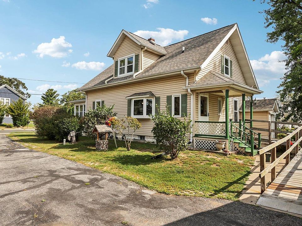 Charming 1900's Cap Cod available in the quaint village of Merton in Arrowhead School District. The front porch is surrounded by windows & perfect to sit and relax. Gorgeous front door & original woodwork throughout. Interior features include a formal dining room, living room, den/office, eat-in kitchen w/pantry, full bath & 3rd bedroom which currently has laundry facilities. Upper level has a large primary bedroom w/2 closets, bedroom 2, loft area & 1/2 bath which has 2 large closets on each side w/enough space to possibly make into a full bath in the future. Basement good for storage and includes concrete stairs leading to exterior. 2.5 car garage. Apple & Cherry trees on lot. Recent updates include roof/gutters/guards '23, kitchen bay window '21, water heater '22, furnace '11.