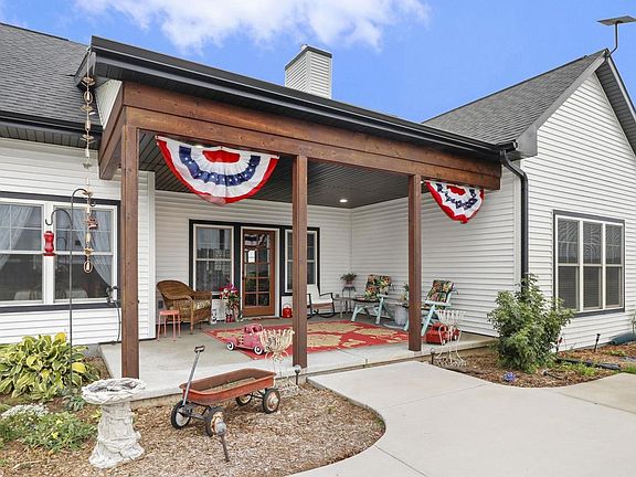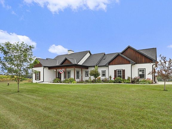 This exquisite, custom-built luxury home rests on 10 private country acres, offering breathtaking panoramic views and complete seclusion. A long, private driveway welcomes you to the residence, featuring 3 spacious bedrooms, soaring vaulted ceilings, and a stunning stone fireplace at the heart of the open-concept living space. The full custom kitchen is perfect for culinary pursuits, and the convenient first-floor laundry adds everyday ease. Sunlight fills the home, highlighting its high-quality finishes and warm, inviting atmosphere. Built for comfort and longevity, the property includes an attached 2-car garage, a full basement with 9-foot ceilings ready to finish, and a whole-home generator for peace of mind. Surrounded by rolling fields and serene rural vistas, this home blends modern craftsmanship, privacy, and tranquility?ideal for entertaining, relaxing, or enjoying nature. Additional acreage available.