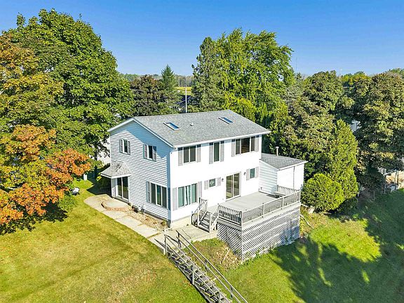 A rare find! Stunning slice of majestic Lake Michigan frontage just a mile from charming Algoma, home to Wisconsin's premier Lake Michigan fishing port! Cozy 2 bedroom/2 bath features lake views from each room! The massive primary bedroom w/double closets & ample windows could easily be split into 2 bedrooms to increase sleeping space. Kit/dining has patio doors leading to a maintenance-free deck ideal for grilling your freshly caught salmon, entertaining family & friends, or sipping your morning coffee while watching the famous Lake Michigan sunrises. Beach frontage includes a direct sight line to the iconic Algoma Lighthouse while hanging out at your private beachfront bonfire!! Fun sledding hill for wintertime fun as well! Saturday Open House!