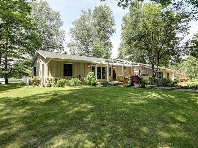 Exquisite luxury lake home comes fully furnished with executive design and impeccably curated details for the discerning buyer. Nestled on quiet Kimball Lake with 500ft frontage. Conscious living approach in every detail from craftsmanship to contemporary flair in bamboo flooring, vaulted ceilings, and hand-hewn beams. Chef's Kitchen features Viking Pro range, wine & vegetable cooler, double oven, & custom island w/butcher-block counter. Master ensuite has lake views, jetted tub, two-way gas fireplace, gorgeous custom multi-spray shower stall, and heated floors. Thoughtfully planned layout has lakeside sitting room, dining room, living room, 2 BR's, and full guest bath to complete the perfect retreat for entertaining & extended stays. Landscaped yard offers decks, patios, and sandy beach w/dock to take full advantage of being lakeside. Guest house/studio has 3 BR's, air conditioning, heat, and garage storage for included 2 ATVs w/trailer, and more.
