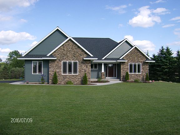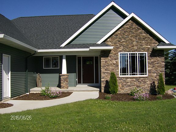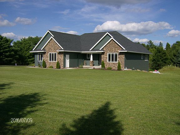 2013 Parade home by Hoppa Builders, Inc. Located 1 mile north of Hatley on a 2 acre lot with 190' of Plover River frontage. 2150 sq. ft. ranch style home with 3 bedrooms, 2 bathrooms and walk out lower level. One of a kind custom home featuring cherry cabinetry, built in entertainment center, birch hardwood flooring, cherry doors and trim, unique ceiling treatments, tile shower, fireplace and Azek composite deck. For personal showing call Nick at (715) 432-2440.