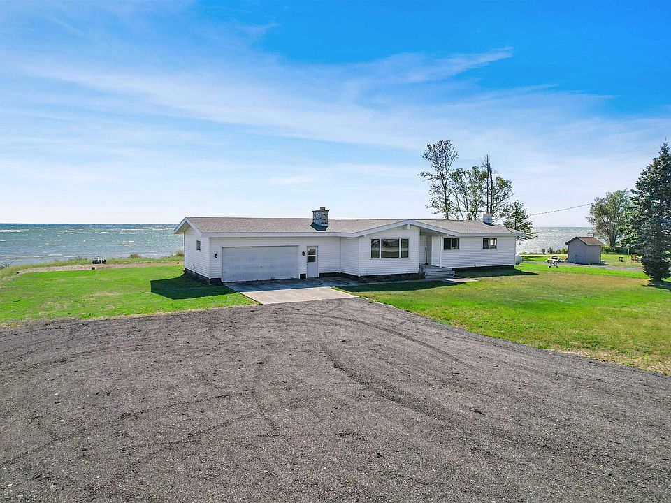 Affordable lakefront property with 210' of frontage. This home offers 3 bedrooms, 1.5 baths, a full basement and a 2 car attached garage. Centrally located between Menominee & Escanaba and only a few minutes from the Cedar River marina, gas station and restaurant Living room with wood burning fireplace, patio doors off the dining room, primary bedroom with a 1/2 bath and patio doors to enjoy the early morning sunrises. The full basement offers workshop area and rec room with wood burning fireplace, freshly seeded front and back lawn, vinyl siding 2017, roof shingles 2016, newer concrete patios Make this your year round or summer vacation home!