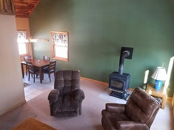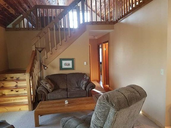 Don't Take TOO LONG to look at this year 'round home on Long Lake. This A-Frame style home was built in 1998 and features an open concept floor plan, two bedrooms, 1 bathroom and a spacious loft. It still has that NEW feeling. The Kentucky red cedar tongue and groove ceiling in the living area and loft area adds warmth and ambiance to the up north cottage atmosphere. A free standing wood stove will keep you warm on those cold nights and the 6x22 deck off the living room on the lake side of the home allows access to the lake front. The unfinished walkout basement is waiting for your design and finishing. The plumbing has been installed for the bathroom and the laundry hookups are in place. A new forced air furnace was installed in November of 2018. You will enjoy the spacious wooded lot and the full recreation lake. Come and take a look and let your imagination and DYI instincts take charge. All furnishings and a 14' Aluminum fishing boat and push lawn mower go with the home.