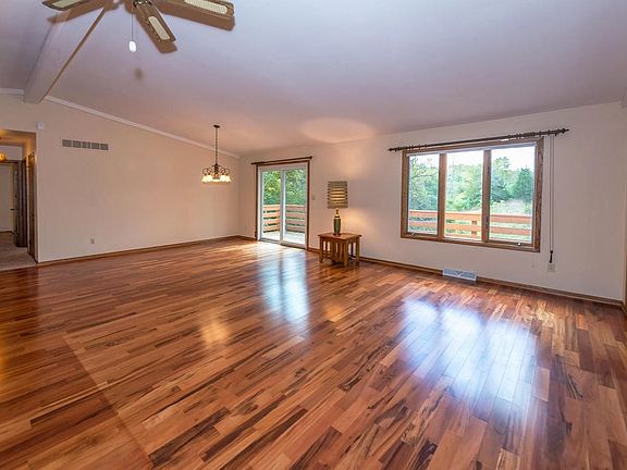 Country ranch with walk-out lower level just outside of Stone Bank. Open concept main level with updated kitchen, expansive family room with vaulted ceiling & gas fireplace. Finished lower level with 3rd bedroom, 2nd full bath, rec room & office. 3 car garage with an additional 1 car under home. Beautiful rolling parcel has 2 tax ID's with woods, ravines & prairies.