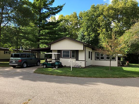You'll love this charming two-bedroom, two bath home, situated in a park-like setting and only minutes from town, located in desirable Pine Vista community. Large living room opens to recently updated kitchen/dining area. Family room with gas fireplace is flooded with natural light. Office and sewing room open to covered sitting area and carport. Property features include patio, mature trees, professional landscaping, and wooded views. Clubhouse, pool access, lawn mowing, snow removal, trash, recycling, water and septic included in lot rent.