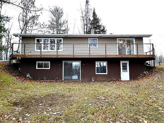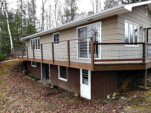 This spacious 3 bedroom, 2 bath Black Oak Lake home is in a very private setting. Two spacious bedrooms on the main level with a full bath, kitchen/dining area and large living room, closet laundry and an open sun deck facing the lake. The partially finished lower level is dry and has a rec room with sliding patio doors leading you out to the lake, a full bathroom and another bedroom. The garage was redone in 2013 with new siding and a new roof. A full recreation lake with ATV & snowmobile trails very close by and a 18 hole public golf course a short distance away.