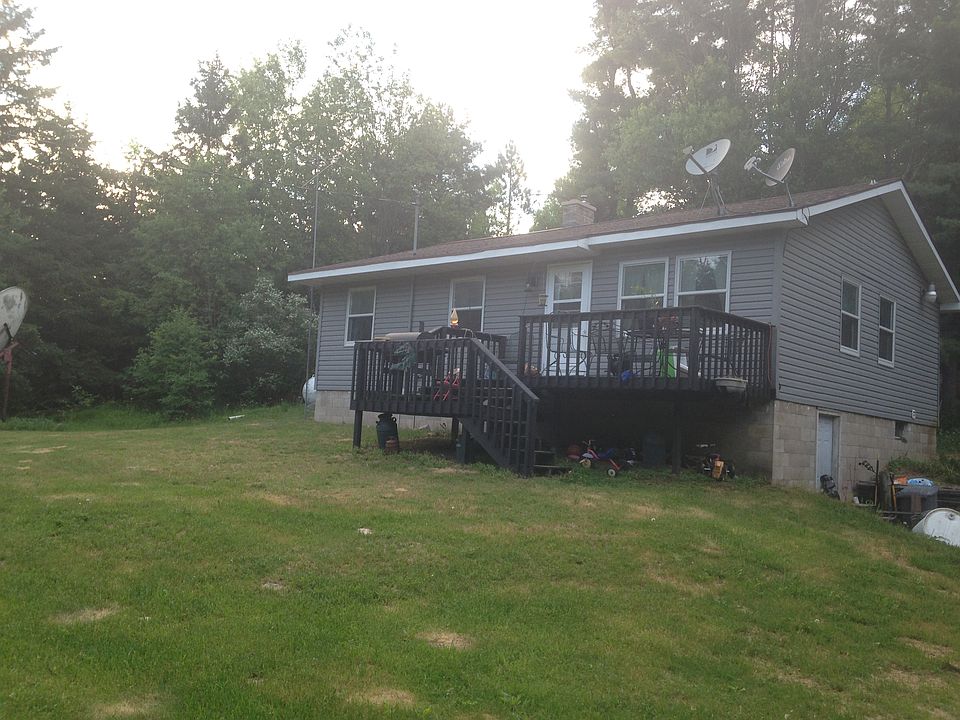 All new windows, front door, furnace, wood stove, vinyl siding, decks, all main level light fixtures, and outlets. Also has a walk out basement, swing set, and a chicken coop. Very quiet and peaceful piece of heaven surrounded by woods and wildlife.