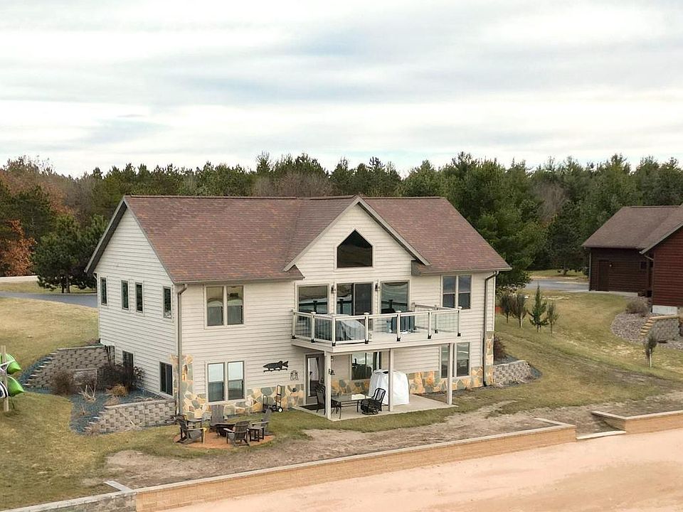 This lakefront property is an "option 1' home in Stone Gate community. It comes with many additional features including an On-Demand water heater, built-in kitchenette on the lower level with a second dishwasher, sink, and mini fridge perfect for entertaining. The insulated garage has heating/air conditioning with tons of easily accessible overhead storage, a sink with disposal and an exhaust fan hood for winter grilling. The outside of the property features a deck and patio with firepit, 100 amp hook up, retaining wall (2023) and in-ground sprinklers. ATV/UTV access from driveway. The home features a private beach and is minutes from Castle Rock Lake. Clubhouse access for this neighborhood includes a pool, fitness room, hot tub, tennis/basketball courts & event space.
