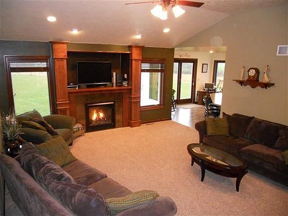 Looking for an executive home without having to worry about your neighbors? Then this custom built split bedroom home is what you have been looking for. As you head down the driveway of this 2 acre (PAO)property you will notice the majestic brick pillars in front of the home along with the abundance of windows. The living area features a fireplace, cathedral ceilings and a built-in entertainment nook. Upon entering the kitchen you will be impressed by the custom crafted cabinetry and by how well the kitchen is set-up to entertain. A large breakfast/buffet bar only enhances the functionality of this area. Stainless steel appliances compliment the chef friendly layout with ample counter space and cupboards. Patio doors lead to the backyard deck and above-ground pool. Enter into the dining area and the first thing you will notice is the floor to ceiling windows. You will appreciate the size of the master suite, allowing for even the largest of bedroom furniture. Adjacent to the master suite is a bathroom, with a large walk-in shower that has 6 shower heads and an overhead rain shower fixture. You will also find a generous sized walk-in closet with a window. Two large bedrooms with a shared bathroom are located on the other side of the home. The main level is completed with a laundry/mud room and half bath. Bring your finishing ideas for the lower level. Daylight windows allow for an additional bedroom(s), family/rec room or whatever you desire. Plumbing is also stubbed to add an additional full bathroom in the future. Store all of your valuables or collections in the lower level secure “safe” room. Garage access to the lower level is another added benefit. Need more space for all of those toys? There is plenty of room to build that dream workshop. Call today to schedule a tour of this beautiful home.
