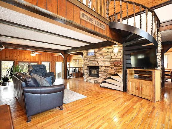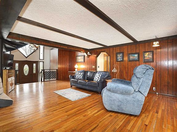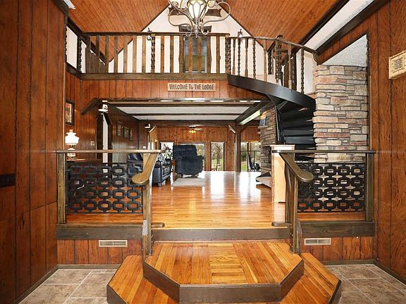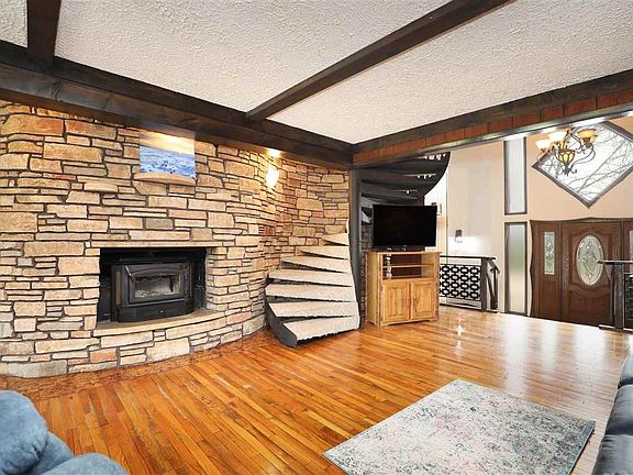 Your own gem, just outside the city. Contemporary home with lots of wood & stone finishes throughout. 4 Bedroom, 2.5 Bath home, two story, open concept foyer has soaring ceilings with the foyer overlooking the great room with floor to ceiling stone rounded fireplace. Hardwood floors in the living room lead you to the sunny landing with patio doors that overlook the back deck and 1 acre lot w/ a stocked landscaping pond, mature trees and additional, new 20X25 ft garage. Master on the main w/ attached BA, LARGE Kitchen and Dining area. Attached 2 car garage. This custom built home is a must see.