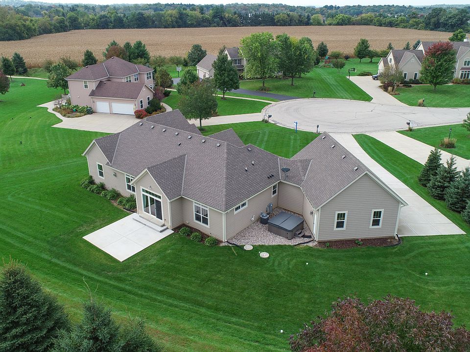 Situated at the end of the cul de sac just steps from the subdivision walking path which leads to the quaint Village of Merton, Firemen's Park, the Bugline Trail & Merton Elementary School you will find YOUR NEW HOME! This split plan ranch offers ultimate versatility w/4 true main flr BRs. One could double as an office! GR is dramatic w/vaulted ceiling, GFP & transom windows! Culinary center is dressed in granite, stainless, HWFs & white millwork which flows freely throughout the home! Posh owner's retreat w/cove ceiling, transom windows, massive WIC & a bath decked out in all the modern amenities! Your LL is enormous & features a 5th BR, full bath w/double sinks, an office/den & super cool theater/family rm for Packer parties & movie nights! This home ROCKS!