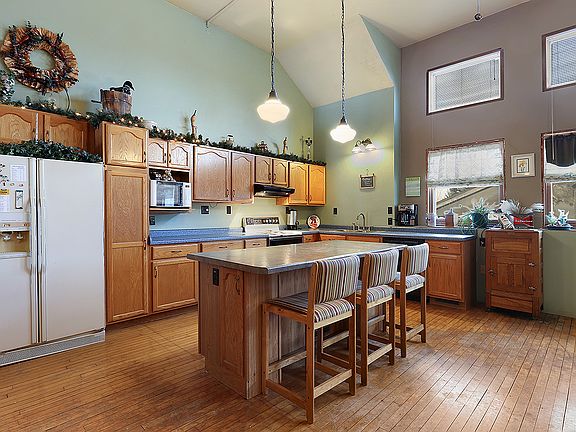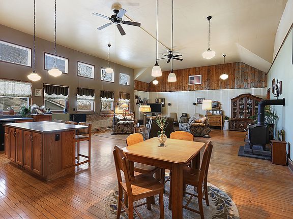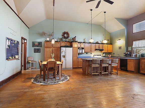 Adorable former school-house on corner lot converted to 2BR/2BA home features exposed brick & original hardwood floors. Kitchen & living room have soaring ceilings and abundant light from large windows. Unique Den/Office at top of stairs. MB w/ walk-in closet. Stay warm w/ updated gas furnace or two wood-stoves. Claw foot tub in 2nd bathroom. 4-stall attached 28' x 40' garage w/ lots of room for storage or hobbies! Questions or offers? Contact Listing Agent directly: Mike Wasilkoff 920-676-9300.