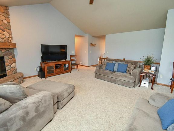 Enjoy peace and quiet in this beautiful home located in a serene cul-de-sac. This home features an open floor plan, cathedral ceilings, finished basement, and a large lot. The natural fireplace, large windows, and open concept kitchen with hardwood floors is an entertaining dream! Lower level boasts a spacious Rec Room and a 4th bedroom with a half bath for privacy. Lots of storage throughout.
